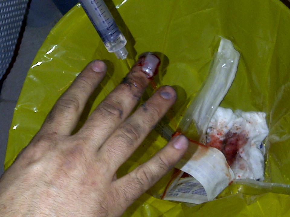 If you are at all bothered by blood or injuries, especially fingernail stuff, you shouldn’t look. Seriously, you probably shouldn’t look. Anyway, I gotta say, it doesn’t look so bad. Though maybe that is just because I saw the other side of that finger as well. Apart from the nail, the other side had the real damage. But the important thing is that the image is now on the Internet.