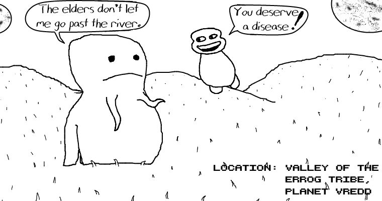 One Vreddite, named Wyeenk, was once mocked by Little Choy. Once, I was planning on doing a comic about the Vreddites before I got going on the Secret Government Robots instead.